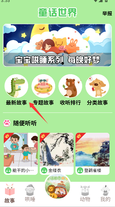 2、浏览故事的标题与封面简介,从中选择希望收听的具体故事,点击其封面或标题进入详情页。