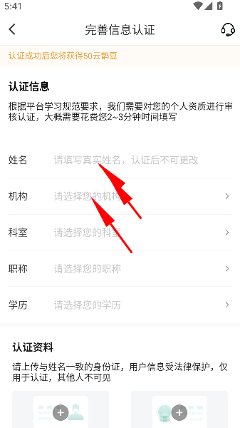 1、首先填上姓名和机构名称,这就像是为自己定制一份云端“工牌”,正式开启专业进修之旅的大门。