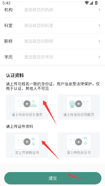 3、最后上传身份证和执业证书照片,这可是“亮出身份”的关键一步,轻轻一点就能完成官方认证仪式。