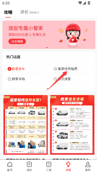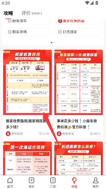 2、接着点进“搬家收费指南”,屏幕瞬间变成一份价格迷宫地图,每个数字都像等待被破解的密码,关系着钱包的厚度。