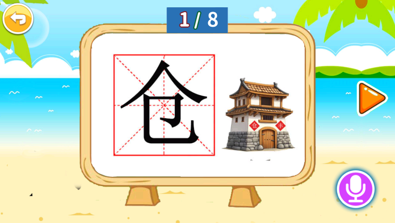3、每个汉字的学习单元通常包含标准读音、清晰书写动画、相关词语及形象插图。