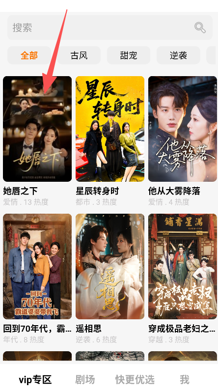 《快更短剧》是一款短剧播放类软件,设vip专区、剧场等板块,分古风、甜宠等分类,展示短剧封面及热度,可播放短剧、查看集数与简介,含倍速功能,满足短剧观看及剧情了解的日常需求。