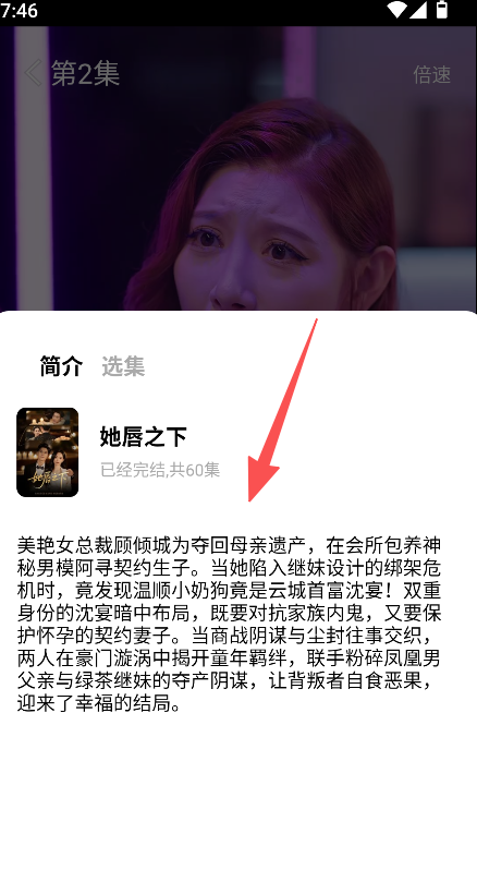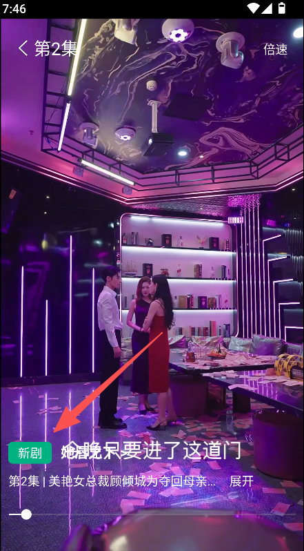 2、支持短剧播放功能,点击对应短剧,进入播放页面观看短剧并使用倍速功能。