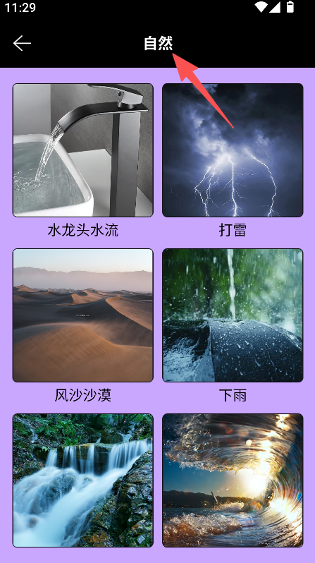 3、返回首页切换分类,进入对应板块,查看自然类等素材内容。