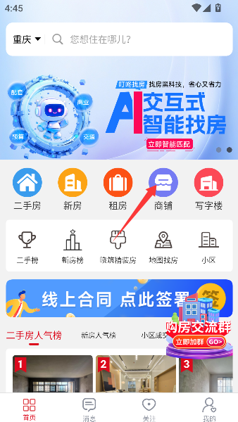 1、房源搜索与筛选,支持按地段、价格、户型、楼龄等关键条件进行组合检索,结果以列表与地图两种模式直观呈现。
