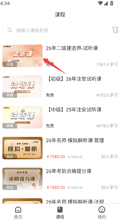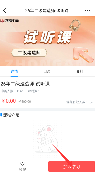 2、留意标有“免费”或“试听”明确标识的课程选项,从中选择感兴趣的课程,点击进入其详细介绍与报名界面。