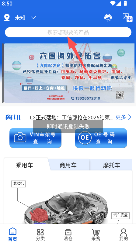 1、支持在搜索栏输入内容,开展汽摩配相关产品的搜索操作,获取对应产品的相关信息。