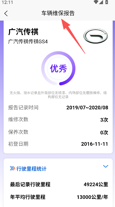 2、维保报告内容详实,含维修次数、里程等数据,直观呈现车辆的维保及使用情况。