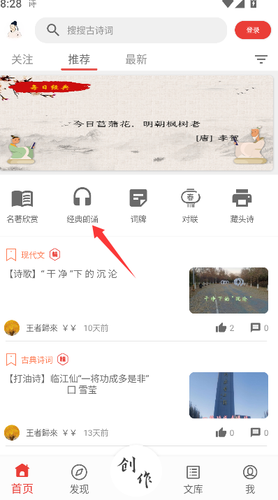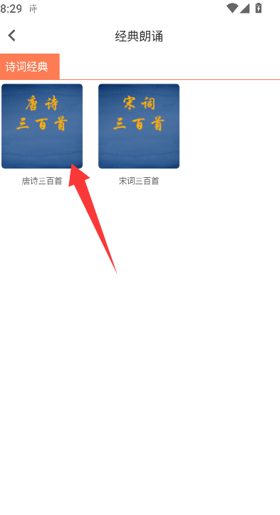 1、在主界面或功能区域中找到“经典朗诵”入口,点击进入朗诵资源列表页。