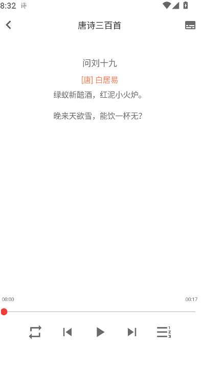 3、应用将自动加载并播放该选集中的诗词朗诵音频,无需额外操作即可聆听。