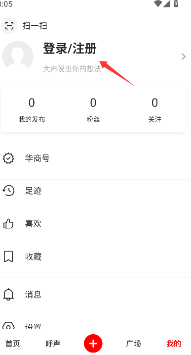 2、找到“登录/注册”、“立即登录”或类似的按钮或文字入口,点击该区域。