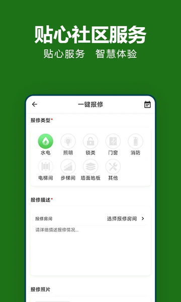 2、提供线上报修、预约保洁服务,问题反馈后快速响应。