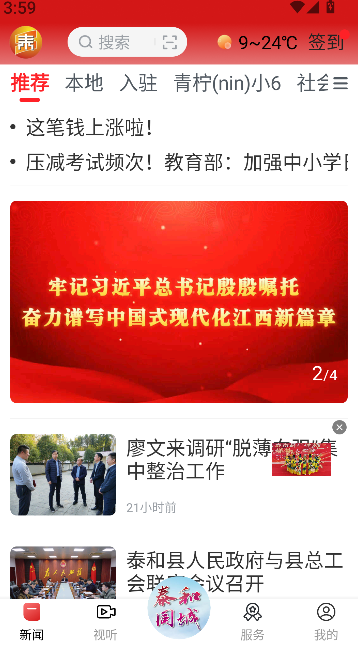1、进入软件首页后找到新闻板块入口,点击进入即可浏览本地热点、政策通知、人文历史等权威新闻,支持按分类筛选感兴趣的内容。