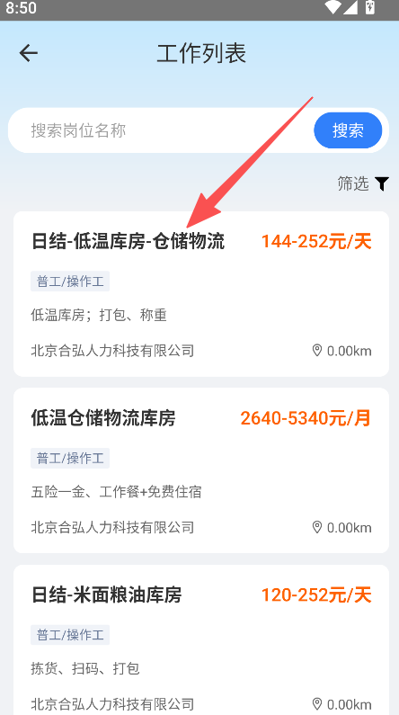 2、在工作列表中选择目标岗位,进入详情页。