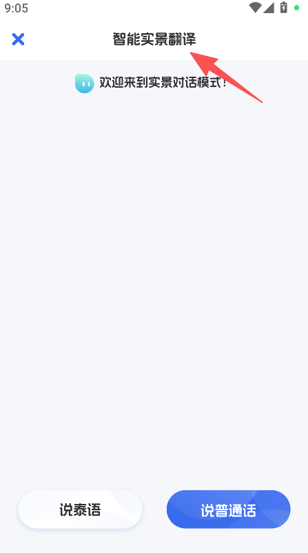 2、可点击实景对话功能,选择对应的语言模式,进入实景对话的翻译界面。