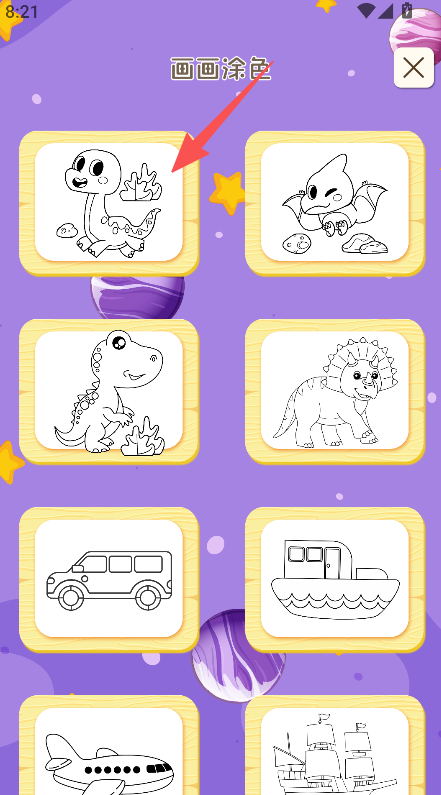 1、支持点击涂色功能,进入画画涂色页面查看并选择线稿素材。