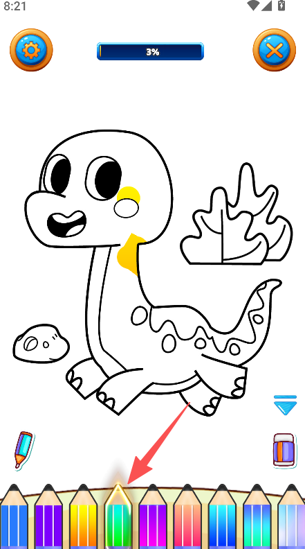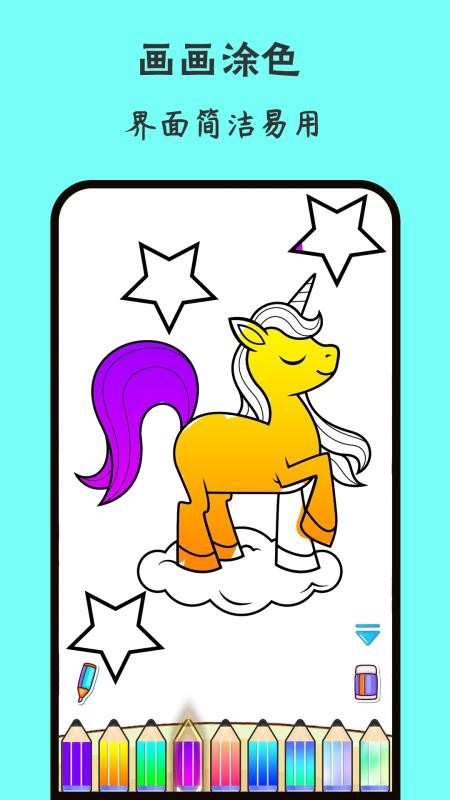 2、填色操作配备底部彩笔工具,工具呈现直观,便于快速选取色彩开展创作。