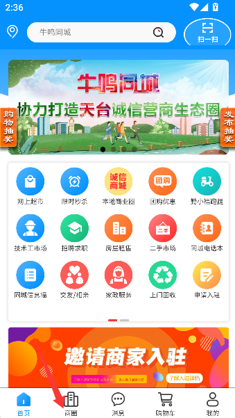 1、点击首页底部的商圈,就像一头扎进本地生活的热闹集市,周围瞬间挤满琳琅满目的小店招牌等你探访。