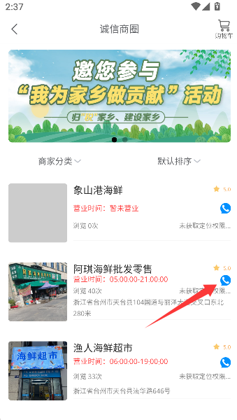 3、点击电话按钮联系商家,你的手指就变成了一根魔法钓鱼竿,轻轻一戳就能把店铺老板从人海里直接钓出来通话。
