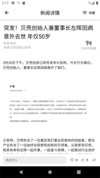 2、选择感兴趣的新闻话题点击进入,页面会呈现该新闻的详细内容与其他人的现有讨论。