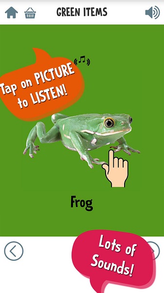 2、个颜色均配有标准发音的语音讲解,孩子可以聆听并尝试跟读。