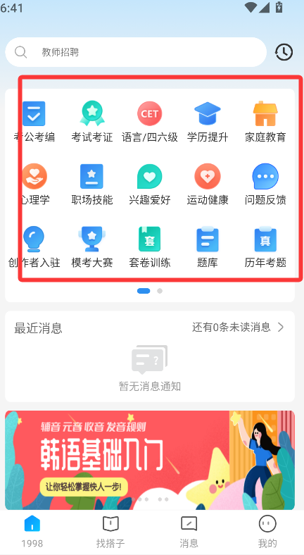 1、进入应用主界面后,在主界面的醒目区域会以图标或分类列表等形式展示多个学习板块。