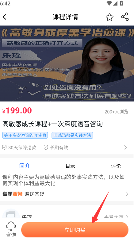 3、,在确认课程内容、价格等信息后,找到页面上的“立即购买”即可成功购买该课程。
