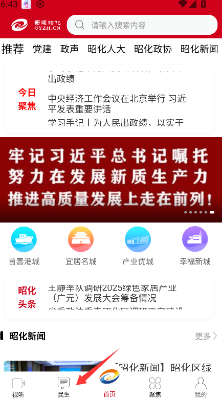 1、在主功能区或顶部导航栏中找到并点击“民生”服务或资讯栏目,页面将跳转至民生相关内容的聚合列表页。