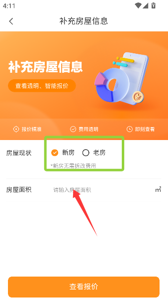2、选择新房或老房并填上面积,仿佛为这次翻新工程划定专属战场,每个平方米都是即将变幻的舞台。