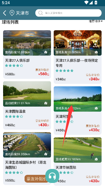 2、选择想要预定的球场,犹如在自助菜单上勾选心仪菜式,不同时段与场地任君搭配组合。