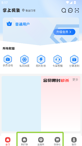 2、首页中间区域罗列着会员活动、每日奖励和限时秒杀,活像一个热闹的市集广场,各种惊喜与优惠正轮番上演。