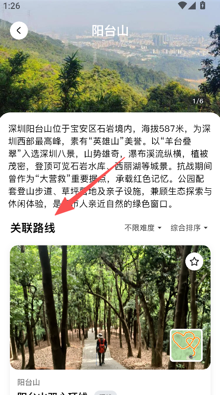 3、浏览景点介绍及关联路线,获取出行参考信息。
