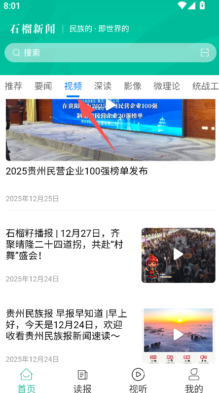 《石榴新闻》是一款聚焦民族类的新闻软件,设推荐、要闻、视频等板块,展示贵州等地的民族、文旅等新闻,点击新闻可查看详情(含视频内容),还配备搜索功能,内容贴合民族及区域资讯需求,操作便捷便于快速获取相关新闻信息。