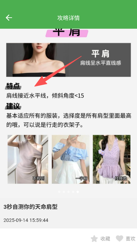 3、在攻略详情页,了解肩型特点及对应的建议。