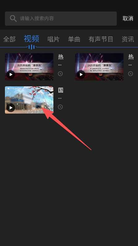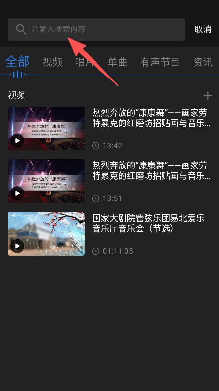 2、在搜索结果中,选择视频分类,浏览展示的演出视频。