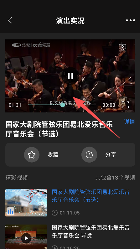 3、选择目标视频,进入播放页,观看演出实况内容。