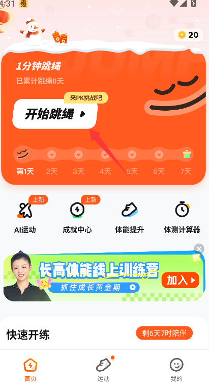 1、在应用主界面,找到“跳绳”或类似运动模式的功能入口并点击进入。