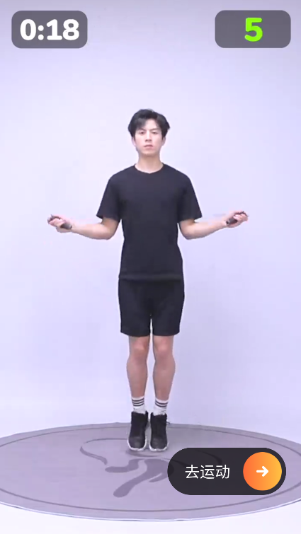 3、开始跳绳后,系统会通过传感器或摄像头自动检测跳跃动作,并在屏幕上实时显示累计次数。