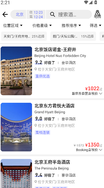 3、系统将展示符合条件的酒店列表,可查看价格、位置、评分、设施及真实评价等信息,按需筛选。