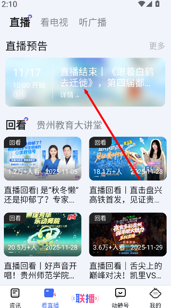 3、在直播专区或相关内容列表中,找到标注 “回看” 的已结束直播,点击即可重温完整直播内容。