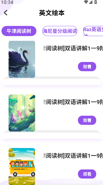 2、在绘本列表中挑选感兴趣的内容,点击封面可进入观看页面,支持听故事、阅读指导等模式。