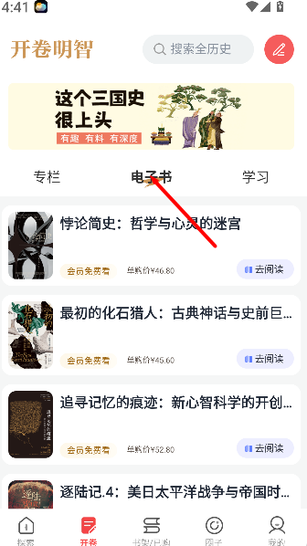 3、返回首页点击 “古籍” 或 “书籍” 专区,进入电子书资源库,筛选历史典籍、学术著作等内容,按提示即可在线阅读或收藏。
