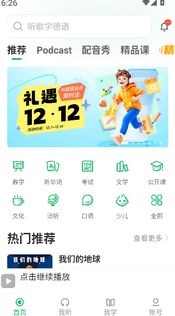3、每日推送新鲜听力资源,包含本土播客与媒体内容,还原地道表达。