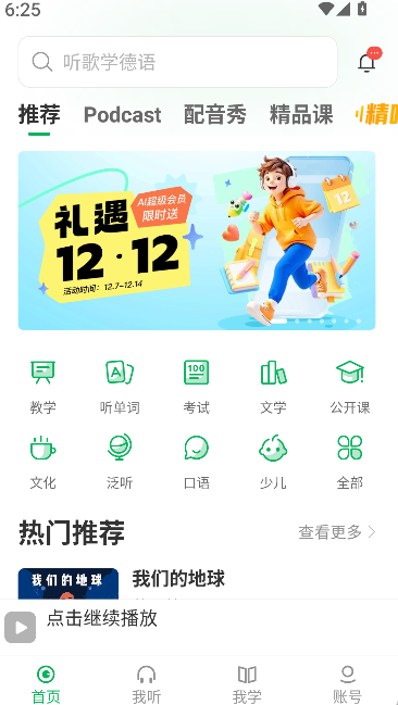 《每日德语听力》是一款助力德语听力与口语提升的学习应用。收录新闻、影视、播客等海量素材,覆盖不同难度与场景,支持语音高亮跟随、跟读打分,搭配划词查询与离线下载,适配德语学习全阶段需求。